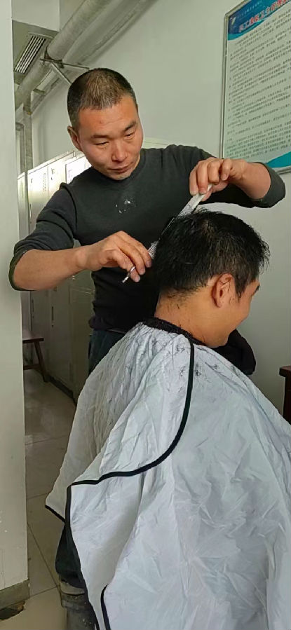 慢慢地,找姚富理发的同事多了起来,有时候还要预约排队,同是理发好手的单东也主动加入了“义剪”队伍,利用下班时间共同为职工理发,得到了大家的一致称赞。
