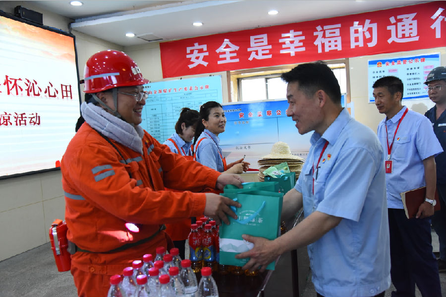 活动中,矿党委书记、矿长徐兴奎亲临现场,为职工送去清凉物资,讲解夏季防暑降温的措施和方法,叮嘱他们时刻注意个人防护,并要求相关部门做好防暑降温工作,确保职工身体健康,为企业安全生产保驾护航。