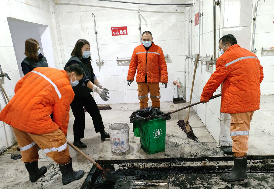 活动现场,从党员干部到普通职工,不分你我,不论职位,人人变身“卫生勇士”。他们按照责任划分,团结协作,顶着氨水刺鼻的气味,挥舞着拖把和抹布,将地砖、隔断、墙砖、浴池及下水道进行擦拭冲洗,在这里,他们不怕脏、不怕累,每个角落都被认真对待,只为了一个共同的目标:让澡堂焕然一新。