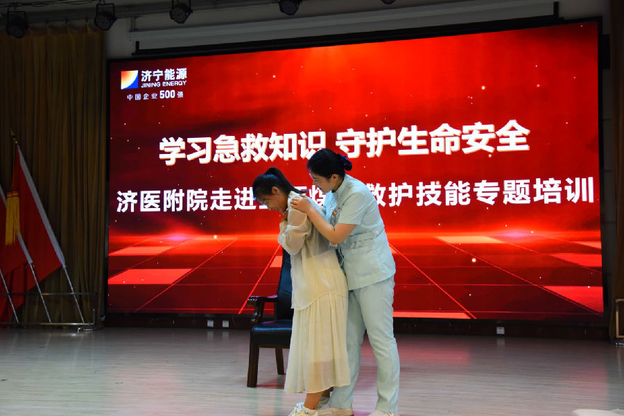 该特邀济宁医学院附属医院3名医学专家现场授课,培训采取“理论讲解+实操练习”的方式进行。培训中,授课老师为每人发放了急救手册,并用通俗易懂的语言讲解了急性心血管疾病处理、泛血管+智慧化高血压管理、心肺复苏术和海姆立克技能操作理论知识,并重点对海姆立克急救手法和心肺复苏的操作步骤及人工呼吸技巧等进行了现场示范。随后,矿领导带头,通过对“模拟人”急救,逐个进行了操作练习,并两两组合进行真人“急救”实操检验,真正让全体职工亲身体会、亲身感受黄金时间“4分钟”急救的重要性和紧迫性。