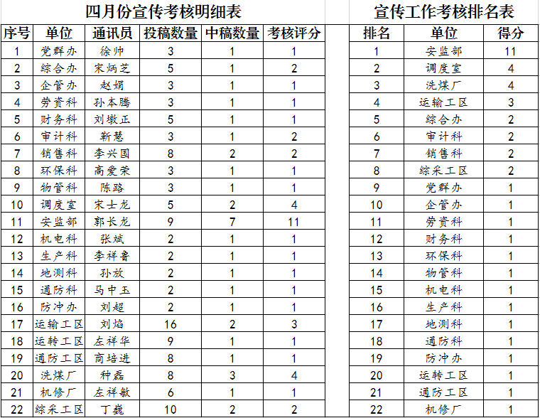 2020年4月份各单位投稿中稿情况公示