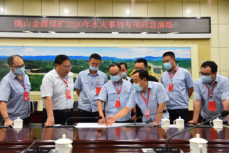 各专业组相互协调、通力合作,经过70分钟的抢险救援,井下除特殊岗位8人执勤外,其余175名矿工全部安全升井。演练结束后,矿长徐兴奎组织召开了演练总结评估会,各专业组负责人和一线参演人员参加,总结经验、查找不足,为下一步水灾应急预案的修订和完善,提供了科学依据。