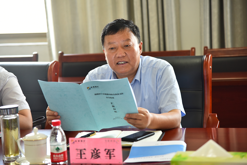 在矿行政办公楼四楼,安全总监苏海龙详细汇报了“安全生产月”活动工作开展情况及“学法规、强管理、抓落实”活动开展情况,重点汇报了“雨季”三防各项工作的准备情况。