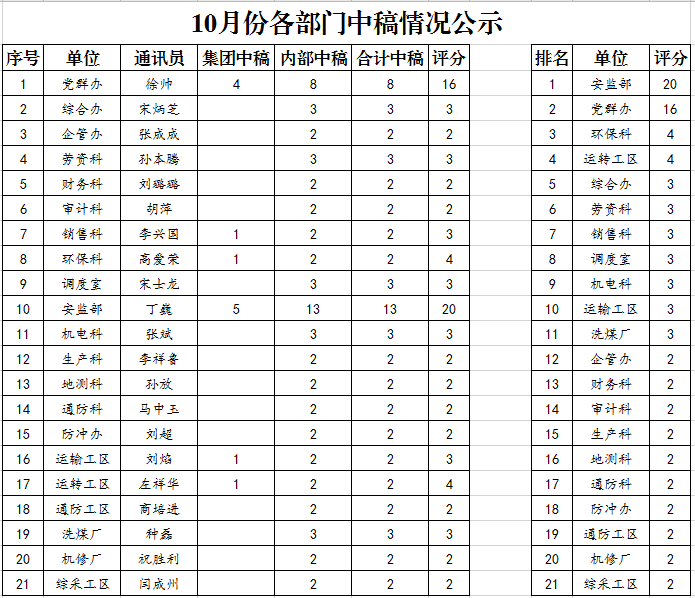 2020年10月份各单位投稿中稿情况公示