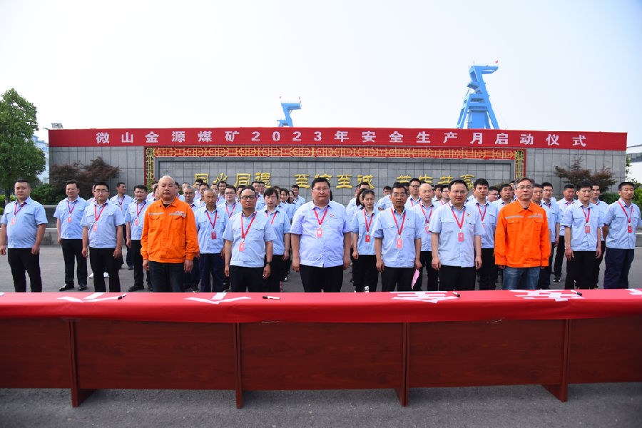 “我是光荣的金源人!我郑重宣誓,遵守安全法规,履行安全义务,坚决杜绝‘三违’,做安全放心人……”庄严的宣誓声响彻整个矿区。