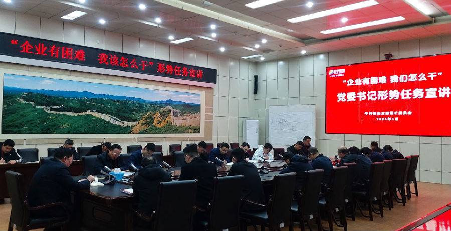 3月13日,best365足球官网召开“企业有困难,我们怎么干”党委书记形势任务宣讲会议,矿党委书记、矿长徐兴奎就当前企业形势与任务进行了深入分析和详细阐述,矿领导班子、各部门负责人共19人参加。